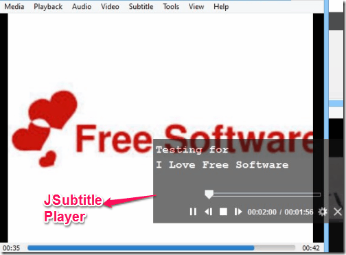 JSubtitle Player is also a useful subtitle player in this list which is only 80 KB in size. It is a portable software and requires Java to run it successfully. It comes with play, stop, next, and previous buttons to control the playing subtitles. A settings icon is also available that helps to set the opacity of its interface. Although it doesn’t hide controls even after adjusting the opacity, but its controls won’t bother you to enjoy the playing video with subtitles.