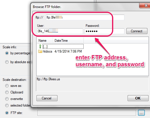 After selecting the FTP server, click on OK button, and start image resizing process using Scale! button. One by one, all images will be processed, and saved to destination location.