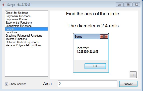 Surge is a free mathematical problem generator for Windows which you can use to randomly create a large number of different mathematical problems ranging from basic math like multiplication tables, additions, number comparisons to more advanced stuff like quadratic equations, functions, trigonometry and so on. Every problem that’s created also requires you to type in a solution and that way you can see if what you’ve calculated is correct.