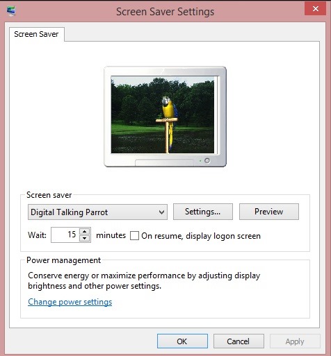 This freeware is basically a screensaver. And you can set it as the current screensaver by opening the PC Personalization Window (right-click on Desktop), so after a certain time of inactivity, a talking parrot appears in the screen, and says the words that you taught him.