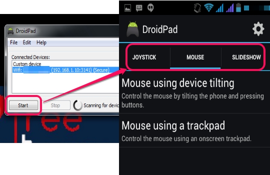 DroidPad is one of the handy application that helps to securely connect Android with PC to use your phone as joystick, mouse, or as slideshow controller. If settings are configured correctly, then you won’t find any trouble in connecting devices and using it. I hope this review will help you to operate it without any trouble.
