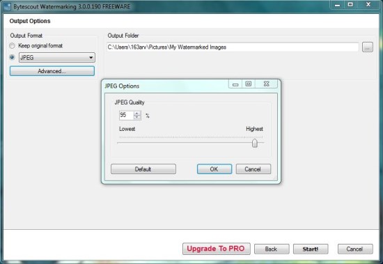 If you are satisfied, you can press the “Next” button to move to the third step. This step lists some advanced properties which are not available in Free version of Bytescout Watermarking Freeware. However, you can upgrade to the Pro version to avail these features.