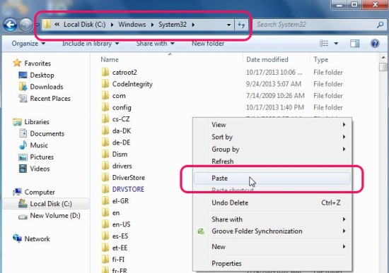 - Paste the copied file into the directory C: Drive -> Windows -> System32 Folder.