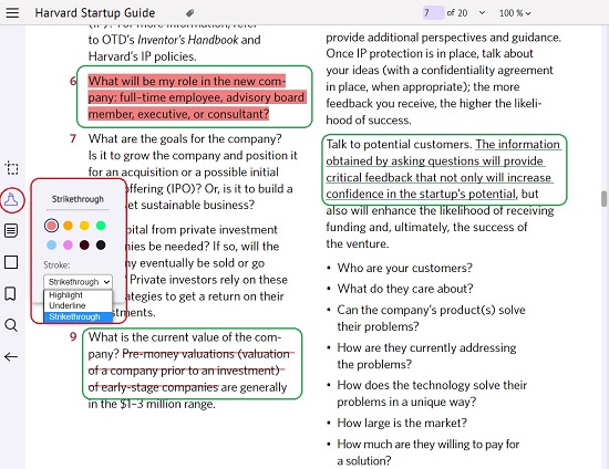 4. To Annotate using a highlight, just click on the Highlighter tool, select the type of Stroke (highlight, underline, strike through), choose the color and then mark the text to be Annotated.