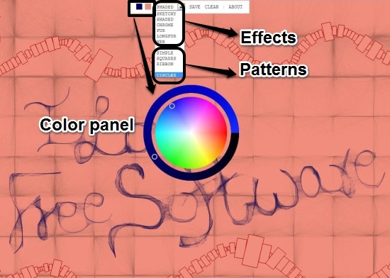 This sketching app does not keep you restricted to follow one pattern, as it offers you various effects and color panel so that you can customize the color and create attractive sketches. It provides you effects like; Shaded, Sketchy, Chrome, Fur,etc. It offers you various patterns like Square, Circles, Grid, etc. that can be included while drawing so that your sketch looks attractive.