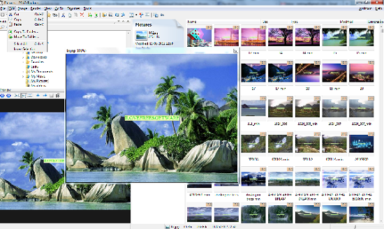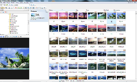 On launching the application, it searches for all pictures on the computer and prepares them for viewing or manipulation. Pictures in the explorer can be previewed on the Preview toolbar by single clicking and opened by double clicking. Items on the explorer can be manipulated using the main toolbar. The toolbar enables users to change the style of listing, rotate images, copy, move and sort images. The Folders toolbar lists all folders on the computer. The toolbar also contains an option to search or reload the file list. The Image menu allows users to manipulate images. From the menu you can be able to print, copy, edit and transform an image by rotating it to either the right or the left. The same menu can be used to toggle between images in the explorer window. You can also choose to preview and zoom focus options.