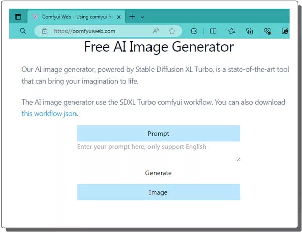 ComfyUI Web is a free website that supports SDXL Turbo model to help you generate images from text. It works in the same was as other Stable Diffusion websites but the difference here is that you get to try the latest SDXL Turbo model to generate accurate images. You can generate images of any type by simply defining them in plain text. For now, it doesn’t even require any sign up or registration.