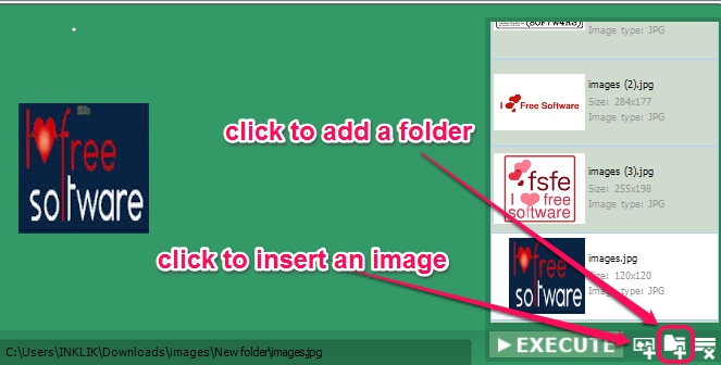 Import an image or a whole folder to watermark photos available on PC. It is disappointing that drag n drop support is not available to add photos quickly. So you can use buttons to add an image or folder. While adding a folder, it will auto sort images from that folder and you can view photos list at the right side on its interface. Do note that same watermark will be added to all photos (if selected folder option).