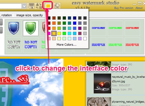 You will be able to quickly create a beautiful watermark with Easy Watermark Studio Lite. See the above screenshot that shows its main interface where you can watermark photos.