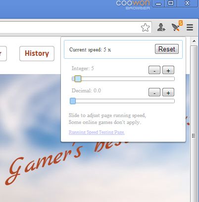 Let’s start with the basics, adjusting the page running speed. What this means is that for example those image transition effects that you can see website will run faster. Same thing goes for any scripts that might be running inside games.