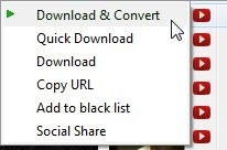 Other then the option to convert video, two more options are given. An option to share it on social networking sites is also given. You can directly share the selected video by logging into your account. The second option is to add the link of that video to black list. This would mean that the extension will block that link and ignore it the next time.