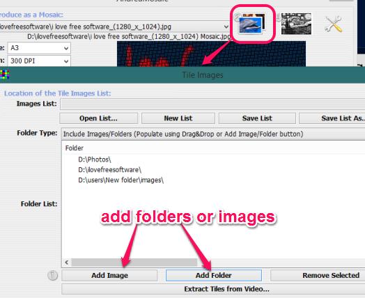 Step 3: This step is used to add tile images for your mosaic. Use available image icon to open Tile Images window, After this, you can select multiple images from PC or can add a whole folder that contains images.