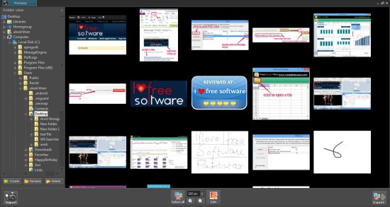 By default, it will show you thumbnails of images available in My Pictures. But you can set your own directory as well. For this, use navigation pane, select a directory, and images available in that directory will be visible to you automatically.