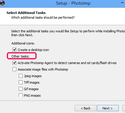 To use this freeware, grab it from link I have given at the end, and install it on your PC. Once installed, open its interface. Its setup file is around 5 MB in size. During the installation process, some additional tasks, like auto detect camera/SD cards, auto associate image files to open with Photoimp, can also be performed.