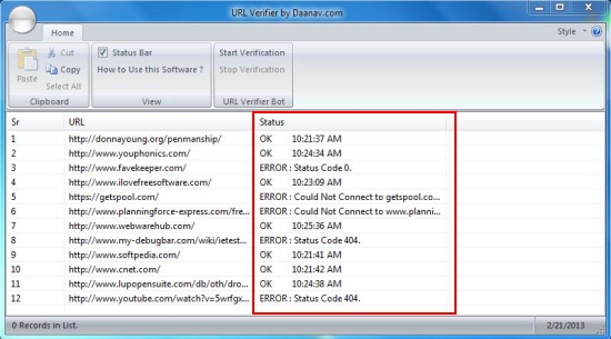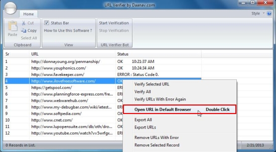 URL Verifier works best when you have a good internet connection and displays verification status of each URL against its entry. It also lets you export the results as text report and allows you to open specific link in your default browser with a double-mouse click.