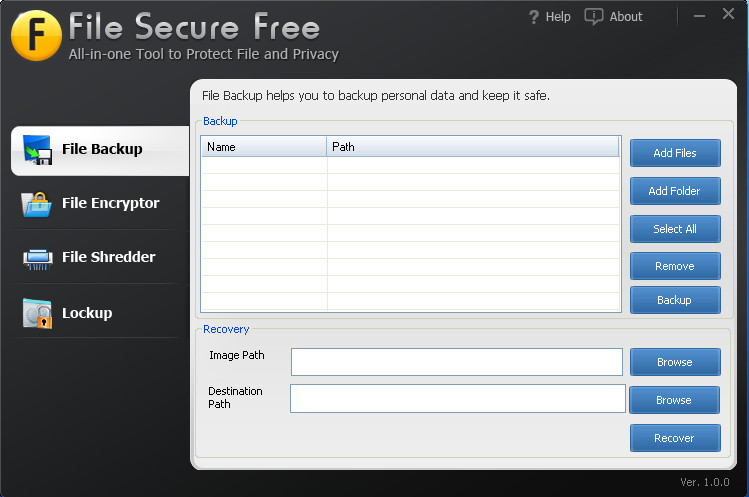 File Secure Free is a free data protection utility which you can use in order to encrypt files, folders and also to create encrypted backups of important data. Backup encryption is the thing that makes this software very useful, because with it you can create encrypted backup images of data which is important to you. Encrypted backups will assure that no one who’s not allowed has access to data important to you.