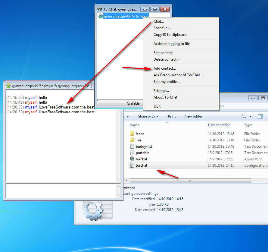 Registration isn’t necessary to use TorChat, as soon as you open up the application your anonymous account is gonna be registered and you can start adding contacts, with which you can then exchange messages. Here’s a few tips to get started.