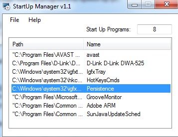 - A very simple startup manager that helps to quickly remove unwanted programs from startup list and add new important programs.