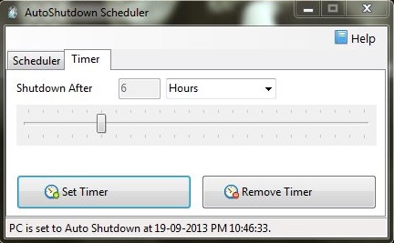 If you know in advance how much time the running process will take to finish, you can also set a timer to shutdown PC. The Timer tab consists of an easy to use slider which lets you specify the time after which you want to shutdown PC. You can specify this time in minutes or hour and hit the Set Timer button to begin the timer.