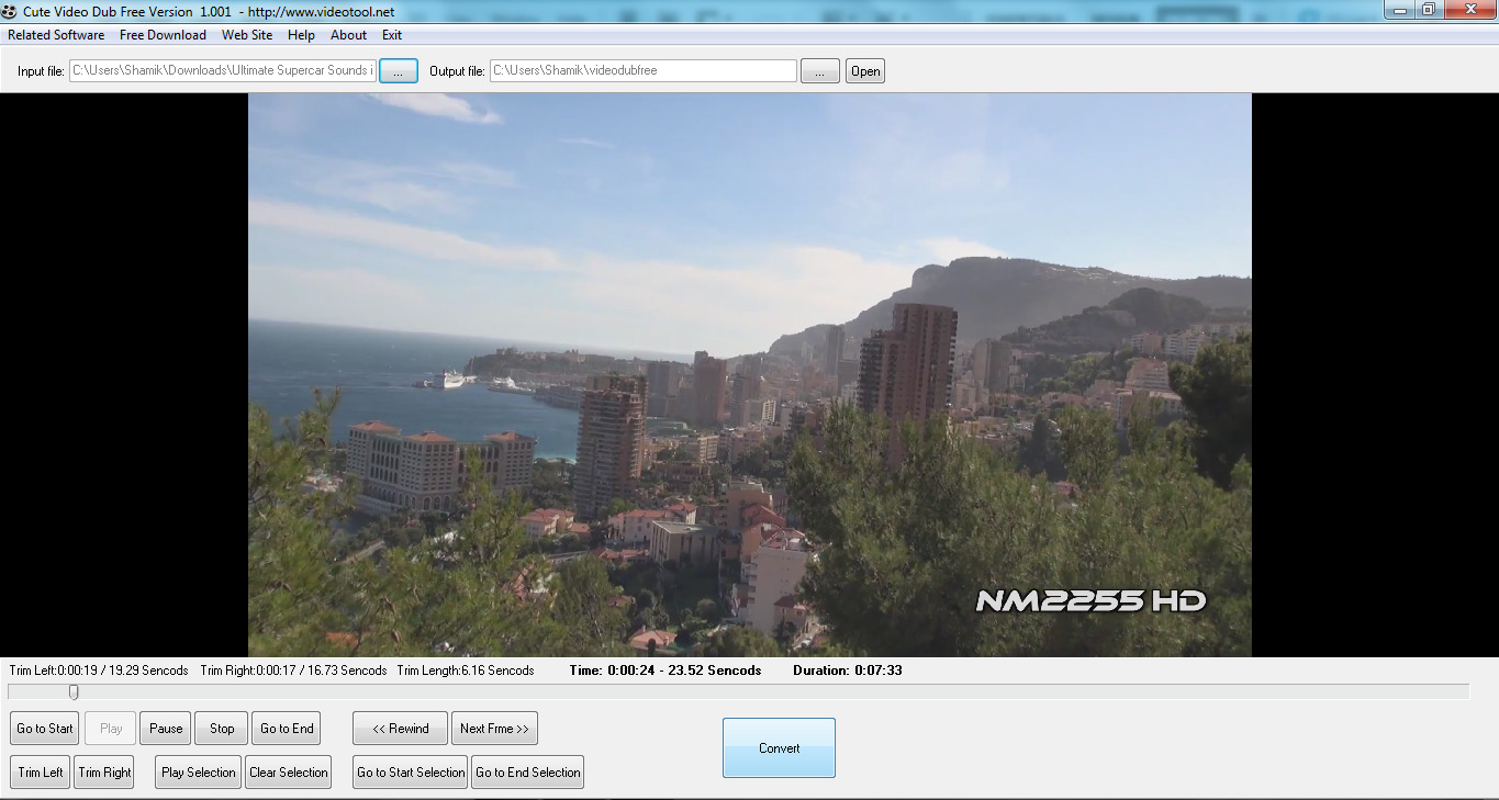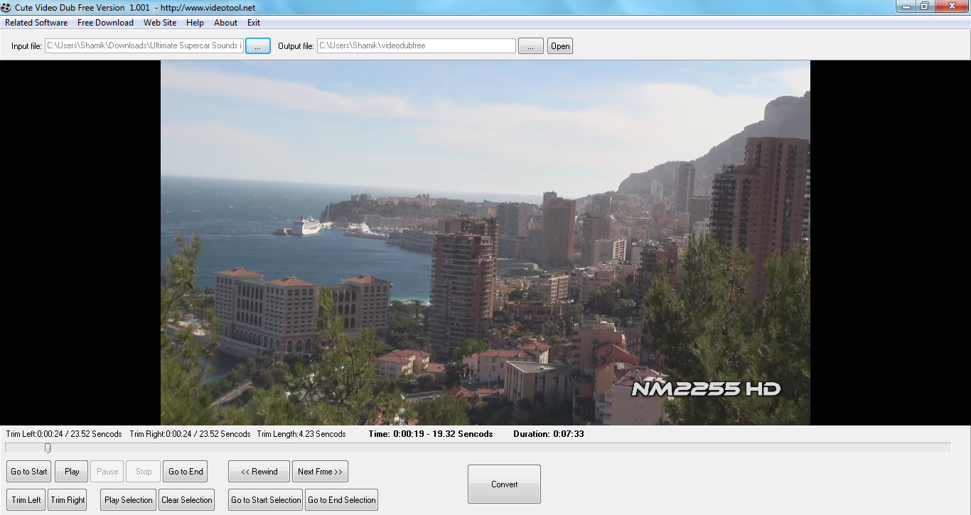 The application works quite nicely overall. It’s not the most sophisticated or attractive option available out there, but it goes about its business in a very non-intrusive manner. It is low on resources and video rendering is pretty good actually. The user gets a load of buttons to choose from. First, the input file must be chosen followed by the output destination. Once that has been done, the video can be played, paused and played frame by frame. It has all the functions of a regular video player such as rewind, fast forward, etc. The user can set a start position and an ending time and then edit both of them using left trim and right trim functions. Once the starting and ending positions have been set, the big convert button does everything else, once clicked. Conversion is quite quick.