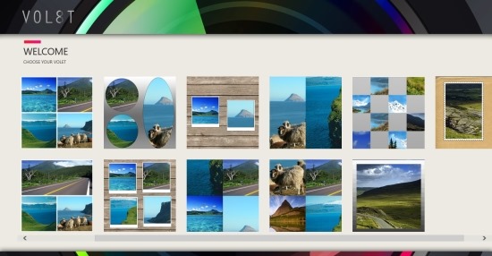 Volet for Windows 8 is available in the ‘Photo’ section of Windows Store. You can download this free Collage app from the link provided at end of the post. The way you use the app is really simple, first thing that we have to do is run the app. After you have run the app you will be able to see all the collage templates the app provides you with as seen below. From these templates select the one that you like the most.