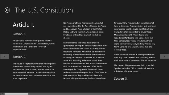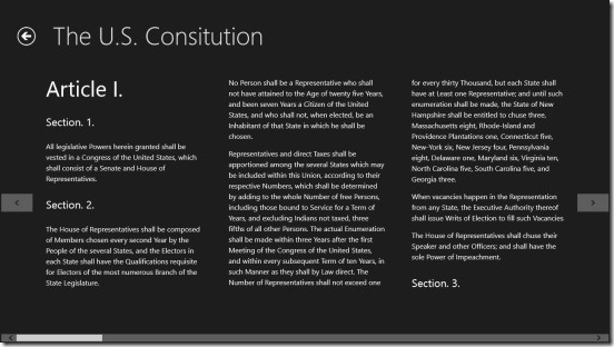 Like I said above this is a Windows 8 app for U.S. constitution, contains the original Articles and the Amendments. Plus, this app also contains high resolution photos of all these original historical documents of U.S. Constitution. So you can sit down and read all the timeless and amazing documents of U.S. Constitution. The app is well made; one really good thing about this app, is there are no Ads at all, hence makes the app clean sleek. This Windows 8 app for U.S. Constitution is very easy to use. All you have to do is click or swipe.