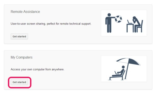 • After authorizing Chrome Remote Desktop extension, you will have the two options in front of you as shown here. We need to use the second one, so click on the ‘get started’ button as pointed out below.After authorizing Chrome Remote Desktop