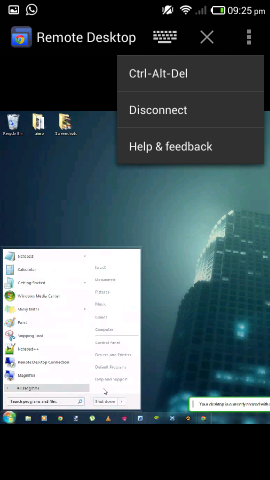 • Tapping the menu button will present you option to disconnect and other options as well.disconnect Chrome Remote Desktop for Android