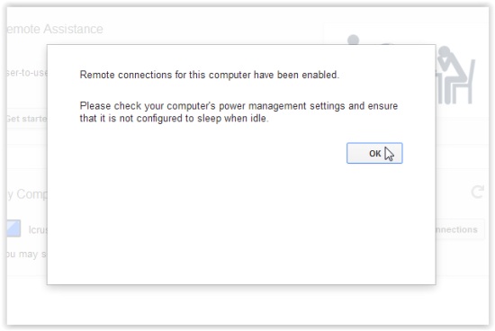 • After getting a success message as seen below you will be able to connect to this PC remotely.success message
