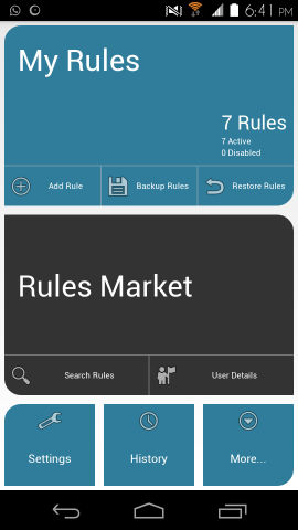 Automateit for Android also has a rule market built into the app which allows you to browse and use rules which are created by other users. Tapping on the rule market from the main interface will bring up the interface as seen below from where you can browse and download rules to your device. You will find many more innovative ways of using this free automation app.
