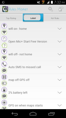 Some pretty interesting rules I found in the Rule market were: automatically start GPS on Android when you start map app, automatically send SMS to missed calls, and many more.