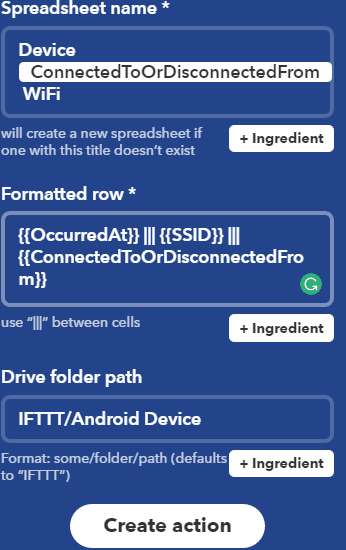 The IFTTT Applet which I am about to create will automatically log WiFi connection and disconnection activity to 2 different Google Sheets i.e. one Google Sheet will just include details of your Android device connecting to a WiFi network and other will include details when your Android device disconnects from a WiFi network.