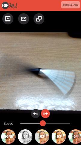 Once you’re done with the recording, the app will present you with a live preview, along with the ability to adjust playback speed by using the slider. At the very bottom, you have the different filters which you can apply on the GIF. Simply tap on the filter to preview it on the GIF you have created.