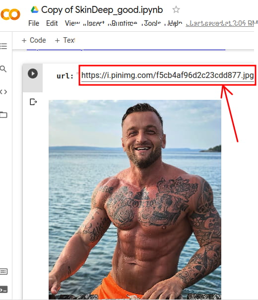 When you reach the 3rd cell, there you will see URL of an image that it will process to remove tattoos. You can replace this image URL with any photo you want to process. But do note that, you have to specify the direct link to an image hosted anywhere.