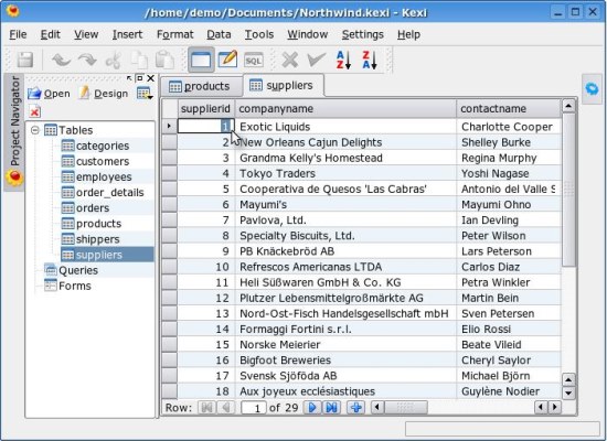 Next in the list is Kexi, another nice free Microsoft Access alternative. It’s a stand alone application that offers a user-friendly interface for creating databases and accessing information from them using queries and scripts. An interesting thing about Kexi is that it has the ability to store data on database servers, apart from storing it to the local machines.