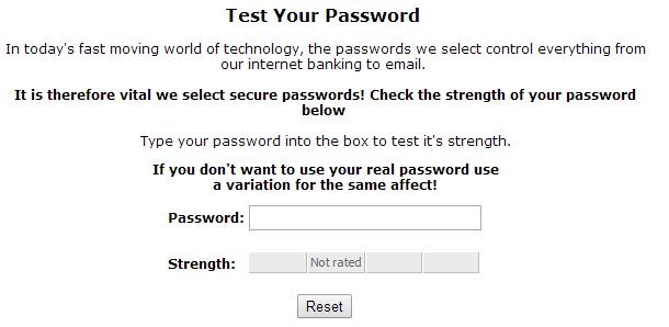 Third website to check your password strength is The Password Meter. The website tells you whether your password is weak or strong and rates your password on a scale of 100 ( in percentage). The website also provides you a list of minimum requirements your password must have. If your password has a minimum number of symbols, numbers, uppercase & lower case letters, then it becomes more difficult for a PC to break it. There is a list of all these requirements, on the home page of the website, and you get bonus marks for including them in your password.