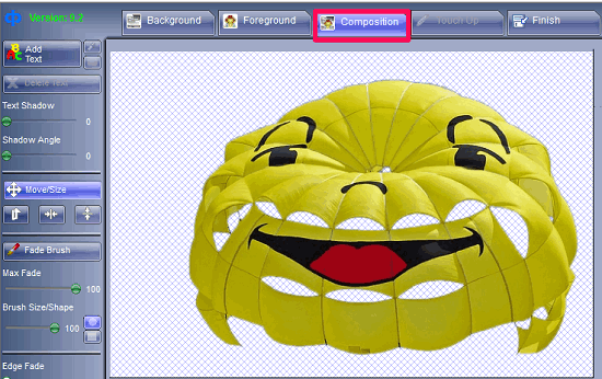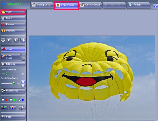 Step 1: Open FotoMix and in the Background tab, check the transparent background option. Now move to the next tab, that is Foreground.