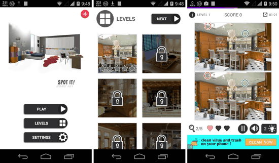Find the Differences: Rooms is a great game from Find the Difference series of games from the developer. This game is comparatively tougher from the other ones here. Tap on a correct difference, and it will be marked. But you have limited number of lives and hence you can only afford to commit 3 mistakes in all. You can also use hints to make the game easier and complete it before the timer runs out. Head over to the Play Store, puzzle aficionados!
