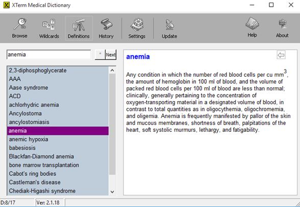 XTerm Medical Dictionary is a bit of an improvement over Free Medical Dictionary Software by FMD. Even though it’s older, it still works just fine on Windows 10 and comes with a large offline database of medical terms and expressions that you can look up. This means that it can be used anywhere, even in places with poor or no internet connection.