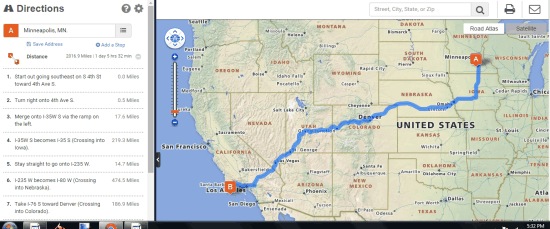 The last online road trip planner website for you is Rand McNally. It also requires you to enter the start and end location for finding the route. You will see the route on map on right side while on the left side, you will see the complete navigation just like you see it on Google Maps. You can click on any navigation point to see that location on the map. It also shows the distance and estimated time for completing the trip.