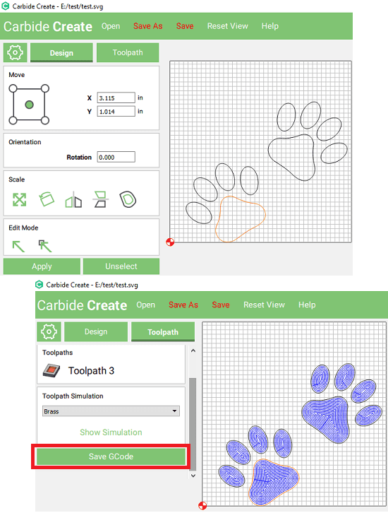Using this software is very simple. Simply install it after getting it from the link above. Next, open a SVG file in it and when it has drawn the SVG design, switch to the Toolpath section. After that, select the shapes from the design and then add them in the Toolpath. You can select the types of toolpaths as well and then create it. Next, again from the Toolpath section, click on any created toolpath and then click on the “Save GCode” button. It will save the Gcode in NC file format.