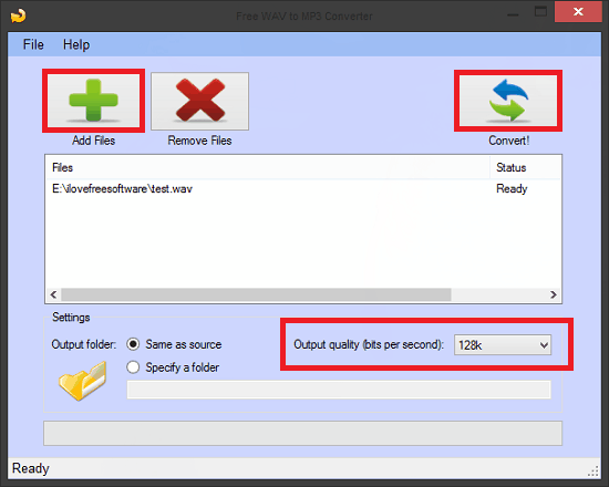 Using Free WAV to MP3 Converter is extremely simple. Just download it, install it and start using it. When you open the software, you will find an Add files button to import a WAV file on its interface. You can also import multiple WAV files. After that, if you want to specify a particular bitrate for the output MP3 file, then you can choose it using the drop-down given in the software. For specifying an output directory, you can either specify a desired folder or let it be same as that of the input WAV file. Finally, hit the Convert button and after converting, it will save the MP3 file in the folder you have specified.