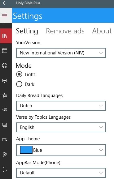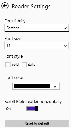 You can change the font style, font size, make the text bold or italics, and change the font color. You can also enable or disable the option for scrolling horizontally. A verse of the day will be displayed on the homepage everyday. You can also access a version of the Bible offline.