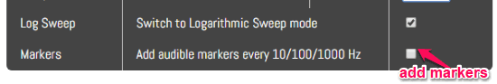 Step 3: Once you’re done with these options, you can go ahead select the sweep mode. By default, the sweep mode will be linear, but you can toggle logarithmic mode by enabling the “Log Sweep” option. Another useful option offered by this online frequency sweep generator is audible markers. When you enable the audible markers, it will generate short pulses every 10 Hz, 100 Hz, and 1000 Hz to help you figure out resonance.
