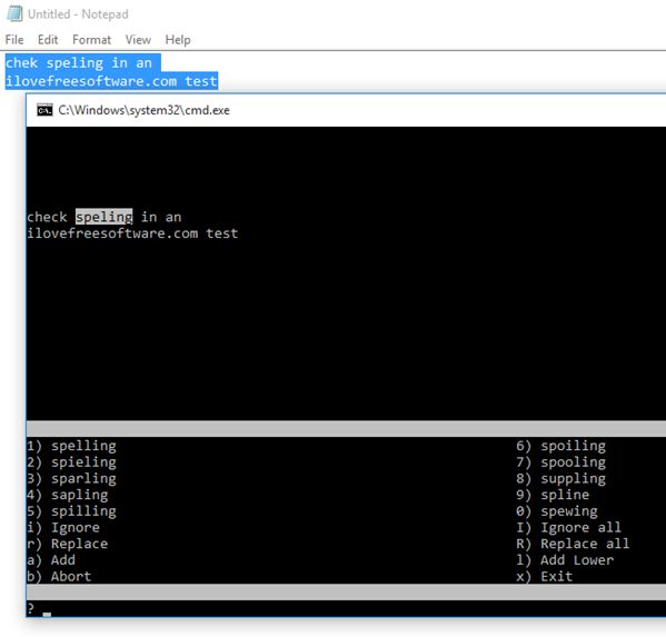 Command prompt window goes through the words, highlighting each word that’s misspelled and giving you correction suggestions. Keyboard hotkeys and a couple of other settings can be changed in the application preferences. Paid pro version is more advanced, it includes GUI for the spell check window and the ability to minimize the main application window to system tray.