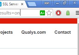 Grades are displayed in the address bar, all the way to the right. They go from A+ for “everything is OK” SSL encryption all the way to F for those SSL setups which have problems and might not even be safe enough for you to comfortably register/login on the website in question. Left click on the grade will take you to more in-depth results of the analysis on the SSLLabs website.