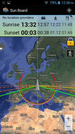 Sun Board Sunrise Sunset is a sunrise sunset app that shows a visual representation of where the sun currently is on the map.