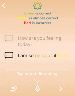 Step 5: Simply tap on any level and hit the “Start” button to proceed and start pronouncing those words or sentences. All you got to do is tap the “Record” button and say whatever is shown on the screen. After that, the same above color code will let you know that whether the text pronounced by you is correct or not. It even suggests some tips at the top of the screen for pronouncing any specific words. You can also tap on the text to hear ELSA speaking the text and press the “Listen” icon to hear your own recording or pronunciation.
