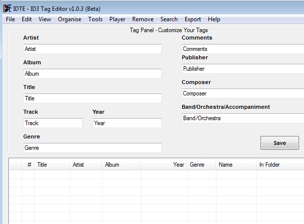 Select the song where ID3 info needs editing from the list down below. Use the Tag Panel and either enter the song information manually, if you know the song name, or you can try and retrieve information from the web by clicking on Search from the menu above. In either case, when you’re done, click on Save to save changes.