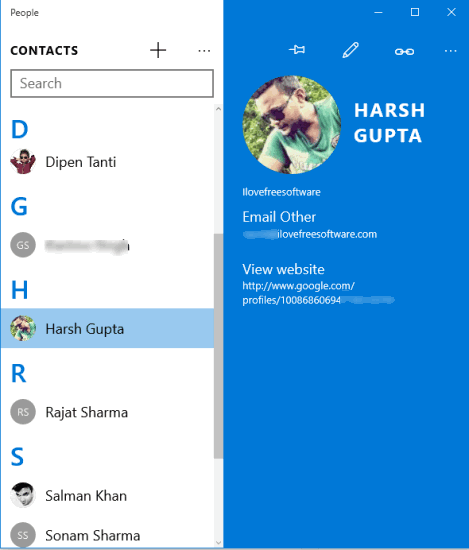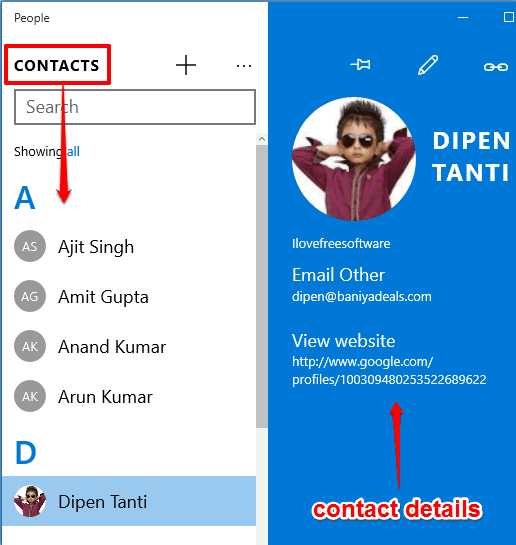 People app in Windows 10 is indeed a good feature to save and store important contacts, emails, numbers, etc., in a single place. This address book is also handy to add Gmail contacts in Windows 10. All you need to do is connect your Gmail account with this app and it will automatically add and list your Gmail contacts. The app works offline too. So, it will also work as an offline backup of your Gmail contacts. You can also automatically sync Gmail contacts with Windows 10, so that contacts always stay updated.